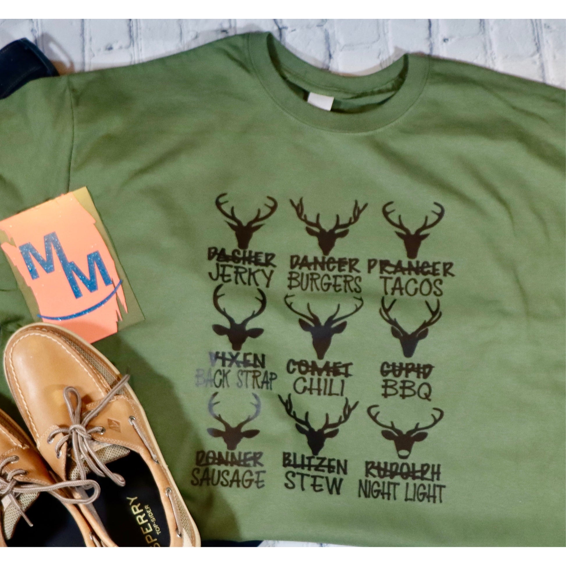 Get ready for the season with the "Christmas Reindeer Meat" shirt, a soft, military green style designed for hunting enthusiasts with a sense of humor. Comfortable and durable, this playful tee brings a festive twist to your outdoor adventures, making it the perfect choice for those who like their holiday spirit with a touch of wild fun.