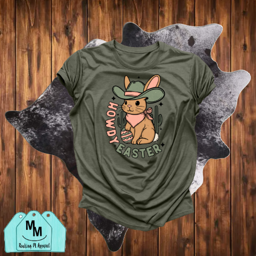 Introducing the Howdy Easter Shirt—the perfect blend of Western charm and Easter spirit. Printed on a soft, high-quality Gildan Soft style shirt, this tee comes in a unique Heather Military Green color, offering a fresh and earthy tone that's both stylish and comfortable. True to size for a perfect fit, this shirt is ideal for all your springtime adventures, whether you're celebrating Easter or embracing your Western roots. With its fun, eye-catching design, the Howdy Easter Shirt is the perfect combination of festive flair and rustic charm—making it a must-have for your seasonal wardrobe.